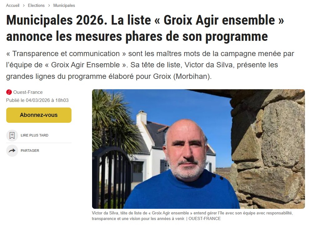 Article Ouest-France exposant les mesures phares de notre programme